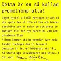 Utgiven med gimmickomslag betitlat "Detta är en så kallad promotionplatta!" Musiken kommer från Hasse Alfredsons barnfilm med samma namn.